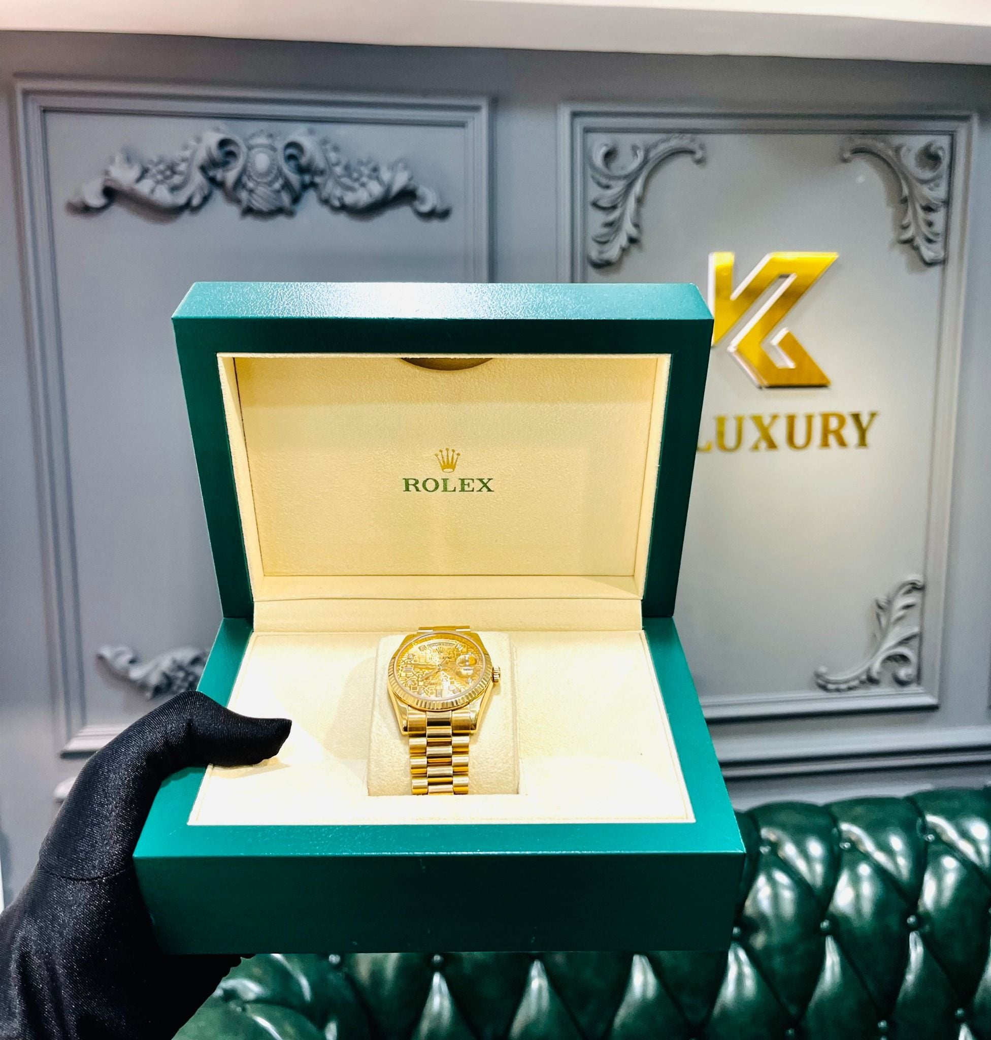 Mẫu Rolex Day-Date 36 118238 Mặt Số Vi Tính Vàng luôn là sản phẩm vô cùng khan hiếm trên thị trường. Nếu mua ở Rolex bạn có thể vào hàng chờ từ 1 đến 2 năm và đối với KH đây quả thực là một trở ngại khi muốn sở hữu chiếc ĐH này! Và các bạn biết không? - K luxury hiểu điều này và luôn sẵn sàng đáp ứng tất các yêu cầu và đơn đặt hàng chỉ từ 2-4 tuần khi Khách Hàng lựa chọn sản phẩm. Đừng ngần ngai mà hãy liên hệ ngay với chúng tôi để được phục vụ một cách tốt nhât.